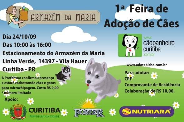 Esta prévia da atuação da prefeitura acontece na Feira de adoção de cães, das 10 as 16 horas, no Armazém da Maria, na Linha Verde, 14.397, bairro Vila Hauer.