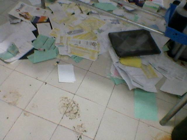 Marcas de sapato do invasor na sala de cirurgia da SPAC.