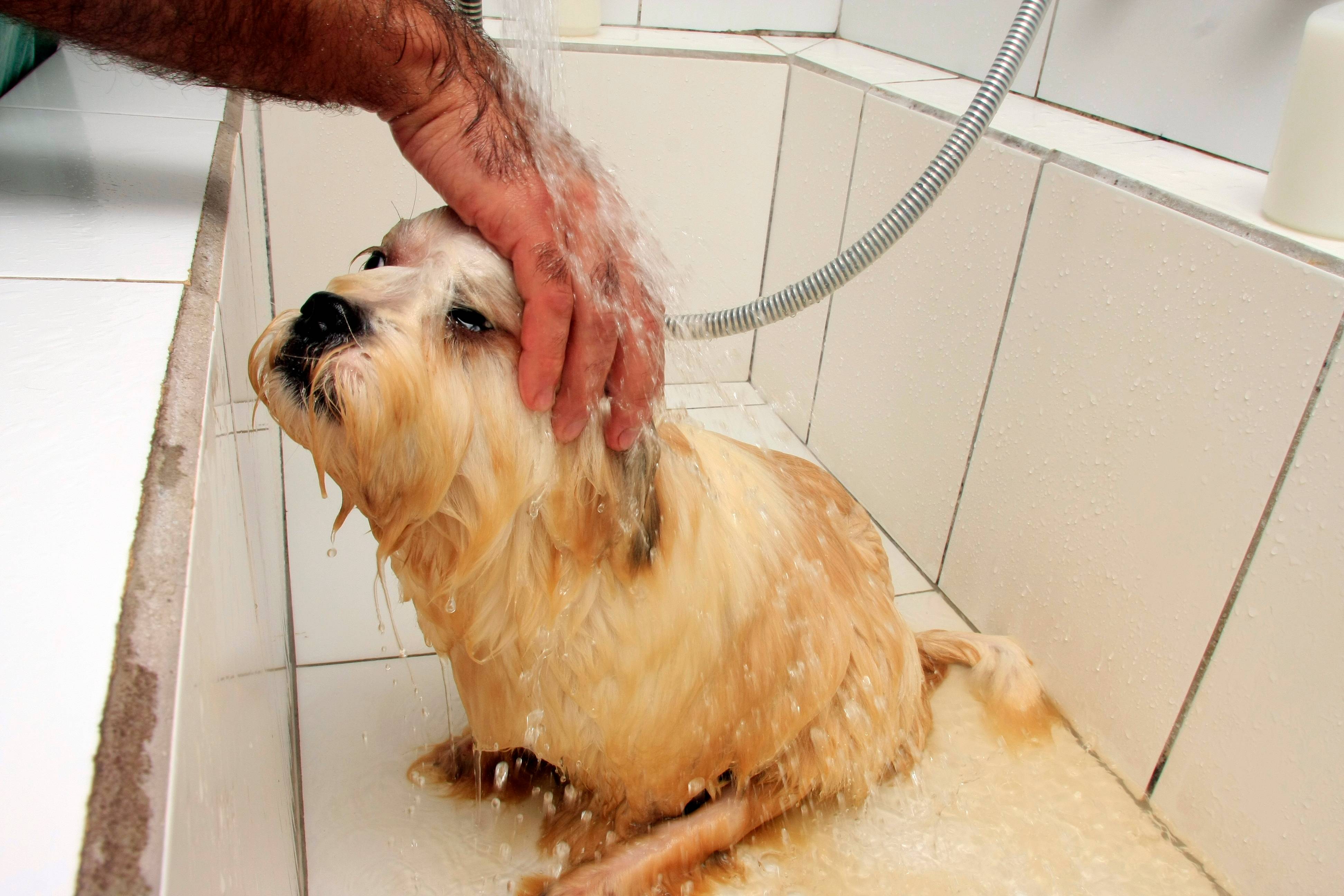 O pequeno lahasa-apso toma um belo banho e se livra do cheiriho ruim.
