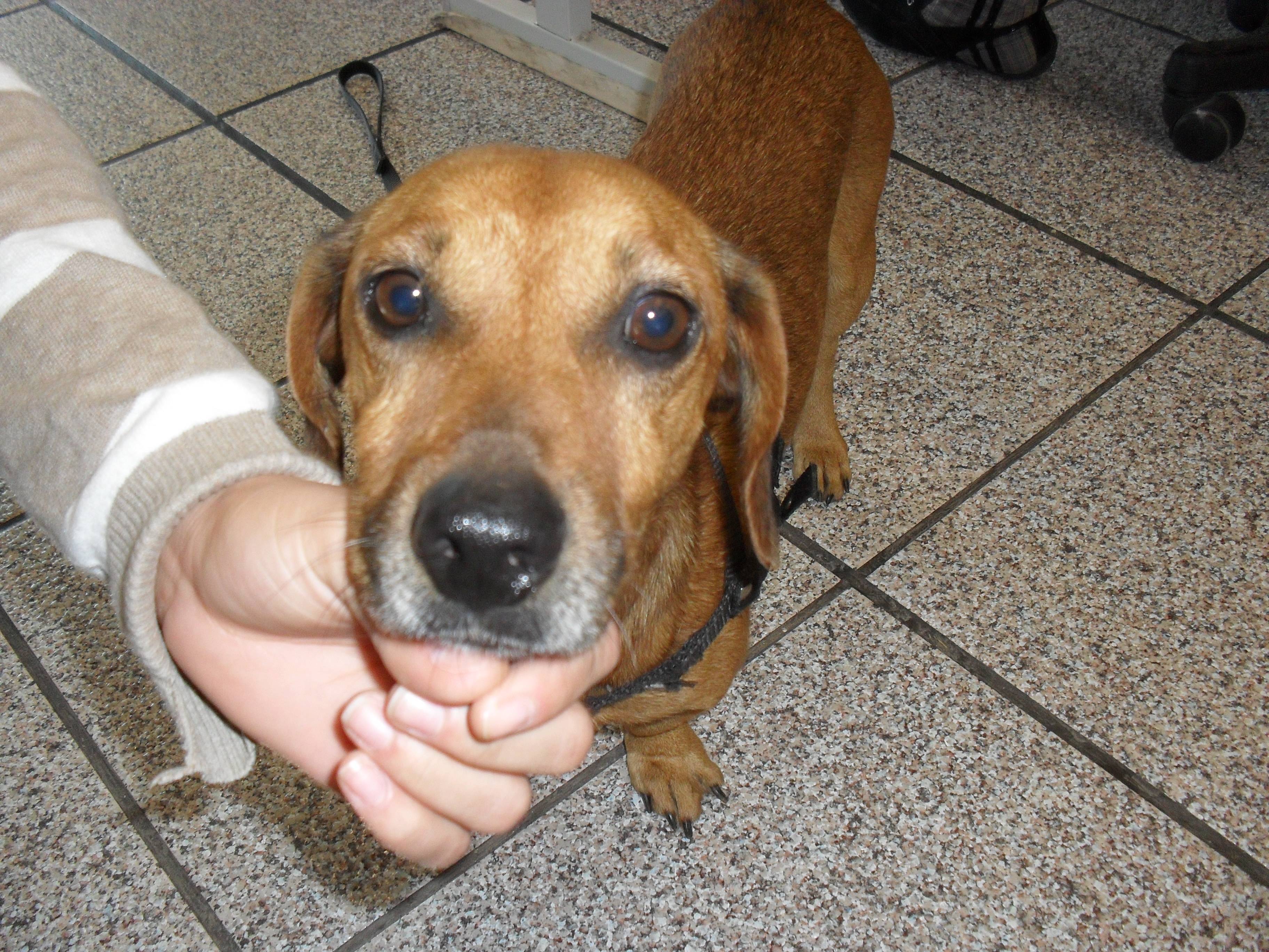 Toby recebe muito carinho enquanto aguarda por um dono definitivo.
