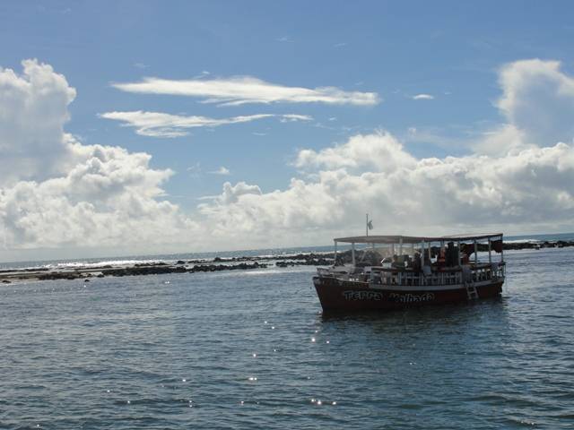 Passeio de barco inclui passagem em quatro praias e mergulho em piscinas naturais.