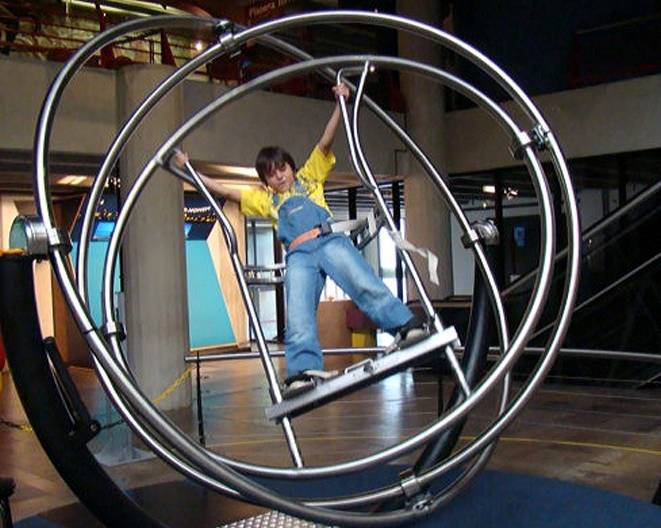 No Museu de Ciências e Tecnologia, o visitante pode curtir o Giroscópio, que simula movimentos de um astronauta no espaço.