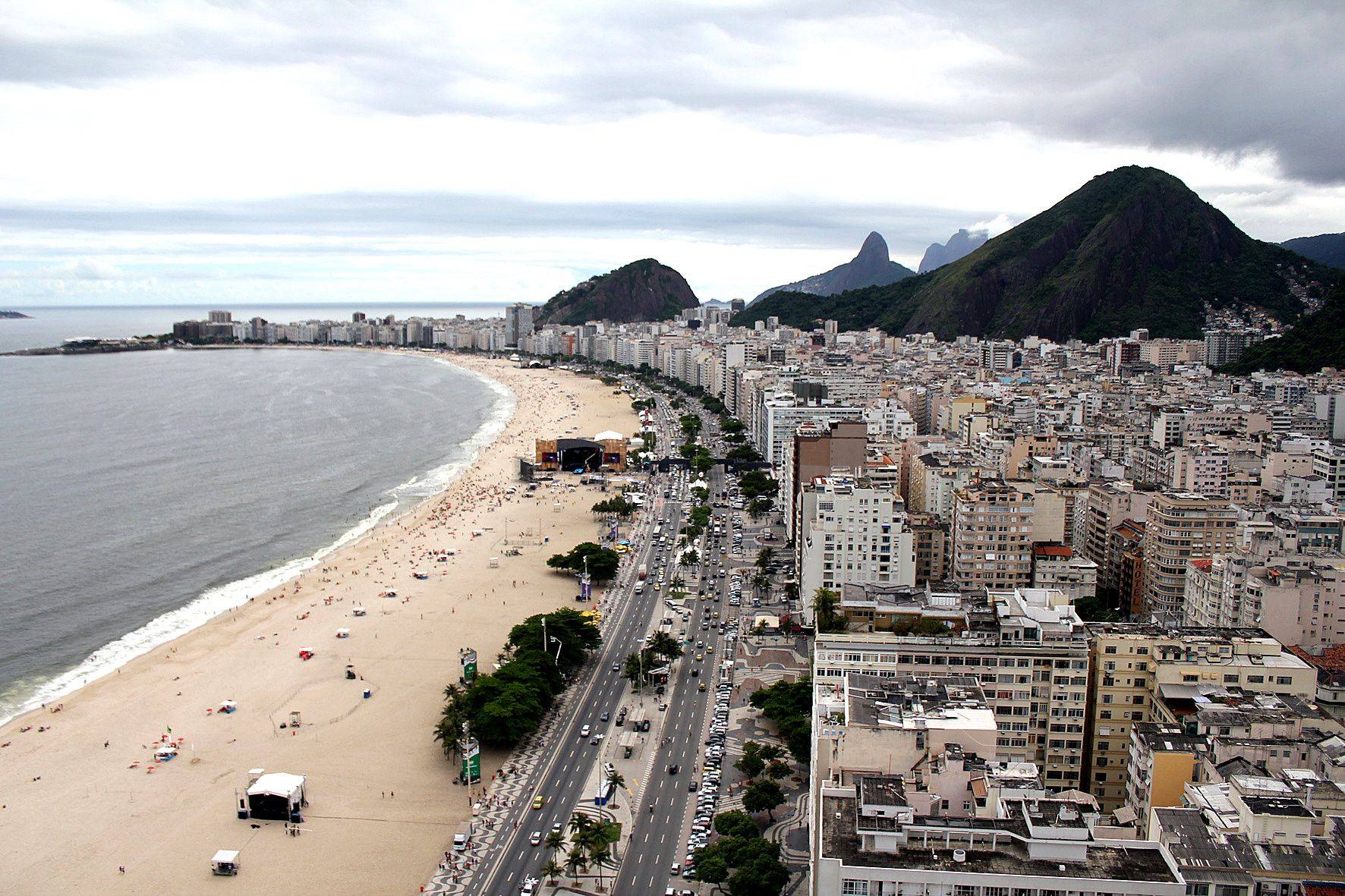 A cobertura do hotel, onde fica uma das piscinas, oferece uma vista espetacular de Copacabana.