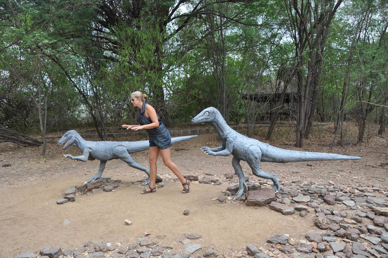 Ana caminhando com (e como) o Velociraptors, em Sousa, Paraíba.