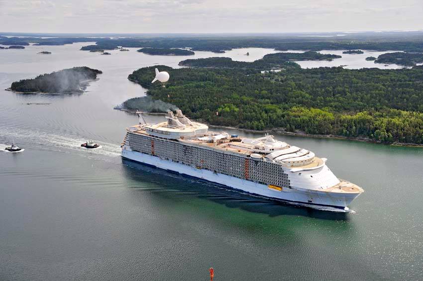 O Oasis of the Seas tem 360 metros de comprimento e pode receber 6360 passageiros.