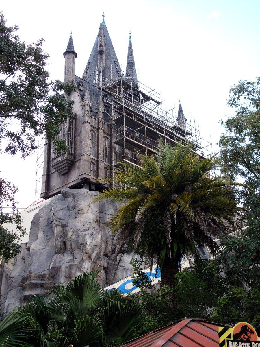 O castelo de Hogwarts, a escola de magia e bruxaria, toma forma no parque da Universal.