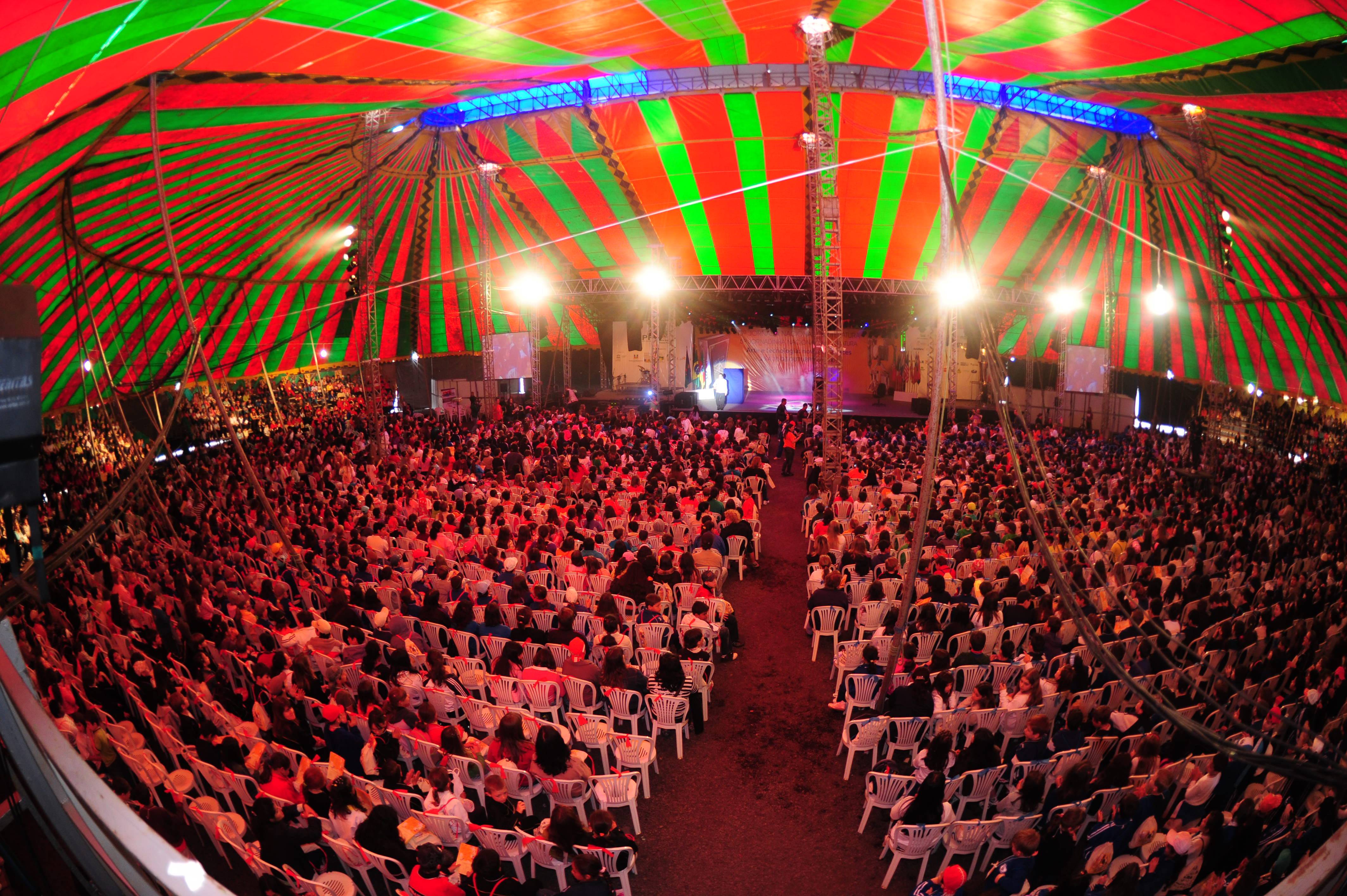 Mais de cinco pessoas dentro da lona principal em Passo Fundo.