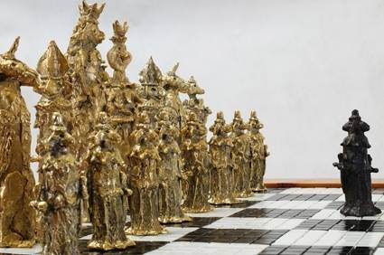 Aos 92 anos, o artista optou por um material que pudesse eternizar a sua obra. A maior parte das 332 esculturas são peças do jogo de xadrez: são oito jogos com peças pequenas e um com peças em dimensões de até 2,10 m de altura. Também fazem parte do conjunto 64 esculturas que remetem a seres imaginários e mitológicos, na forma de objetos como castiçais, copos, jóias e sinos.