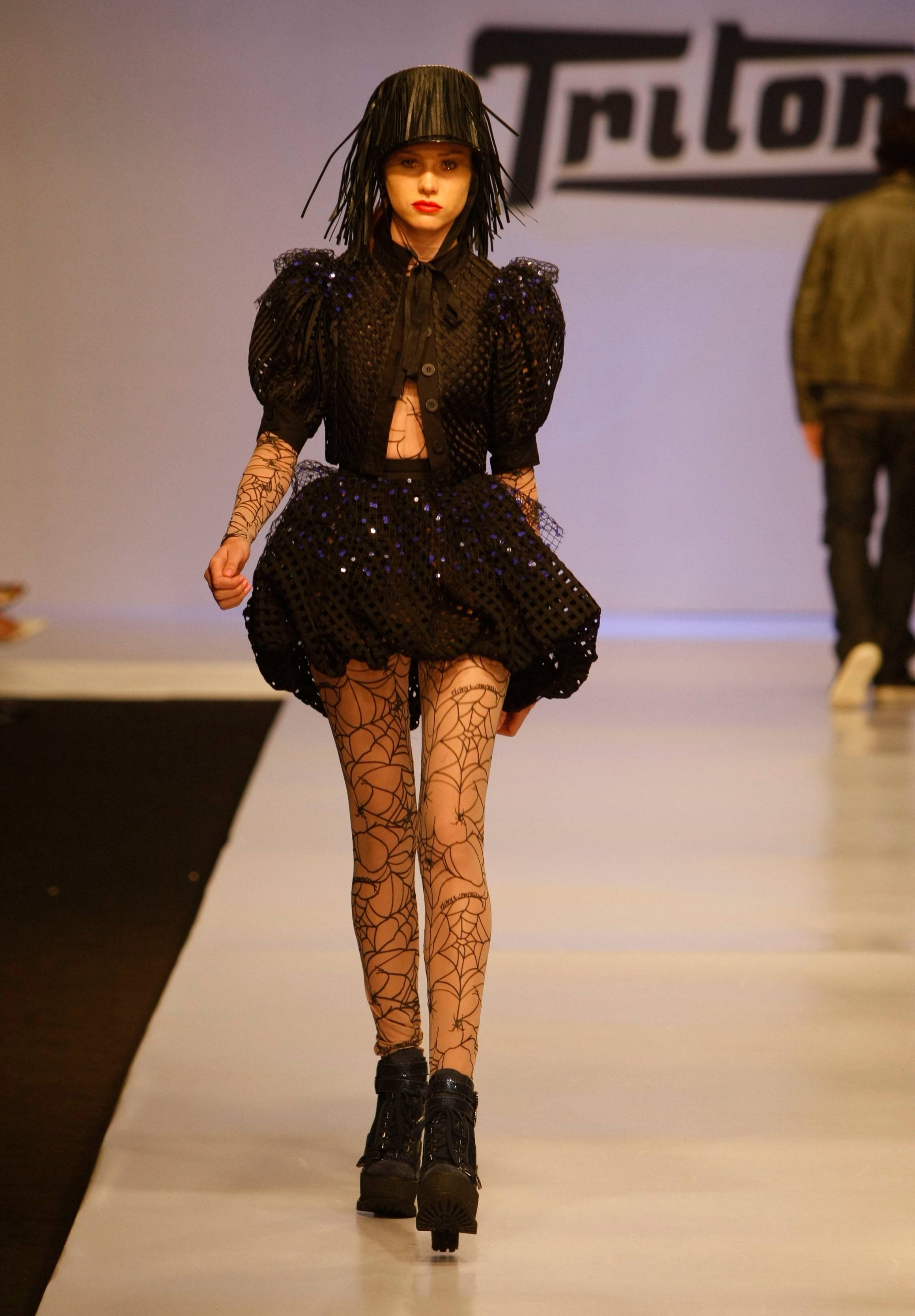 A vocalista da banda Cansei de Ser Sexy, Lovefoxxx, criou estampas para a Triton, mostradas ontem no desfile outono/inverno da marca, durante o 22º Crystal Fashion. Dentre as estampas, cogumelos, corujas e teias de aranha.