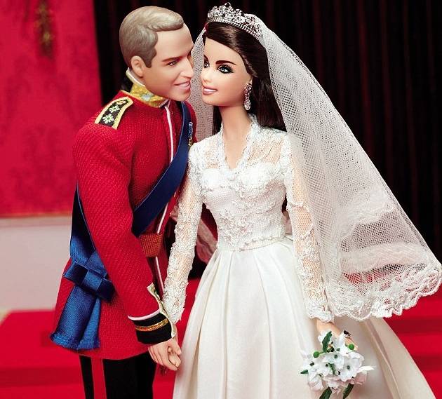 O jovem casal real britânico Kate Middleton e Príncipe William ganhou uma homenagem da Mattel para comemorar um ano de casório, que acontecerá em abril. Os dois agora têm versões da Barbie e do Ken com as roupas que usaram há um ano na cerimônia que parou o mundo em Londres.