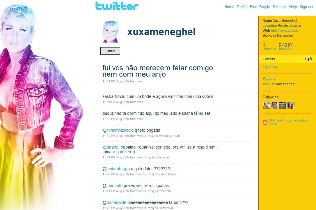 As péssimas linhas acima poderiam ser de um péssimo script para qualquer filme da apresentadora Xuxa relacionado ao mundo “2000 and late”, mas na verdade é uma tentativa tosca de relatar o que a “rainha dos baixinhos” tem enfrentado nos últimos dias por causa do microblog Twitter.