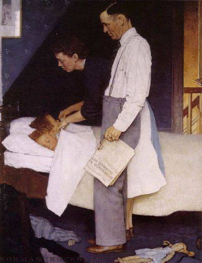 O último quadro da série das quatro liberdades, de Norman Rockwell. É a liberdade do medo.