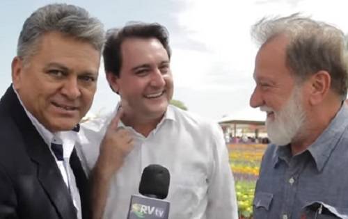 Ratinho estava dando uma entrevista para a RVTV News e o apresentador interrompeu quando viu Osmar Dias se aproximar para fazer os dois conversarem ao vivo.