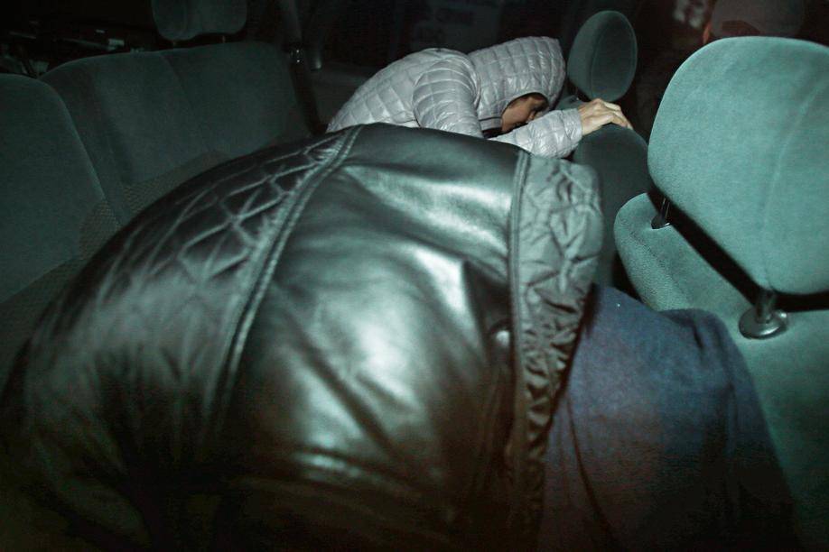 Atrás, Fernanda está com uma japona clara, mãos no banco da frente, na mesma posição do marido, como quem estivesse evitando ser vista pela janela – tanto por fotógrafos como pela população, depois que o carro se pusesse em movimento.