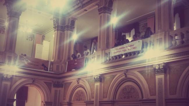 O grupo de manifestantes levou faixas e conseguiu, depois de algum tumulto, ter direito a se manifestar da tribuna. Uma mãe falou da dificuldade de colocar sua filha de quatro meses em berçário, agora que está acabando sua licença maternidade.