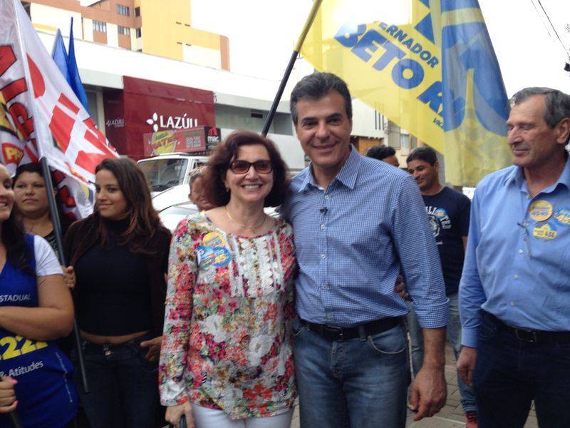 Na sua página de Facebook, a nova secretária aparece fazendo campanha para Beto, para Aécio e em várias fotos ao lado do então presidente da Assembleia Legislativa Valdir Rossoni (hoje deputado federal).
