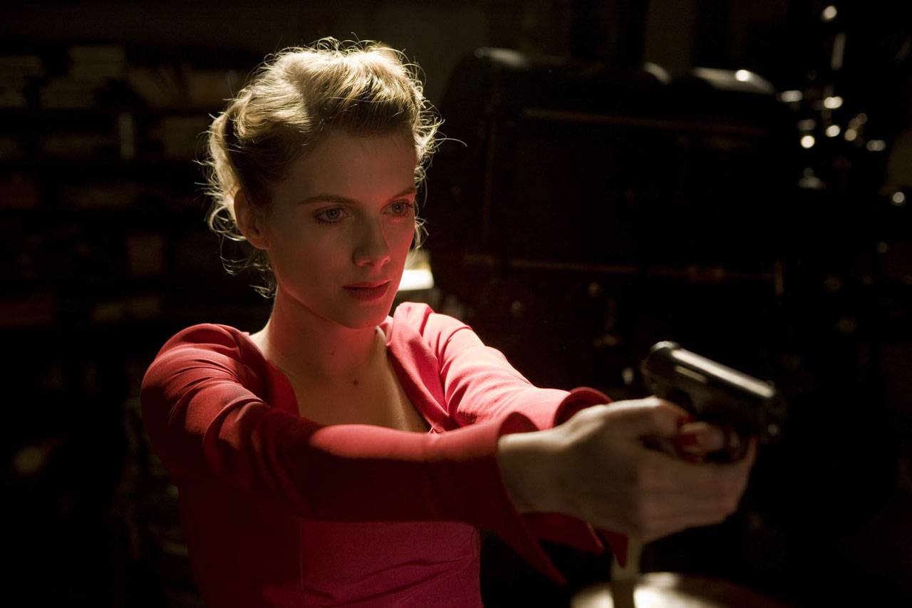A francesa Mélanie Laurent encarna uma femme fatale com sede de vingança, em citação ao clássico noir Cat People.