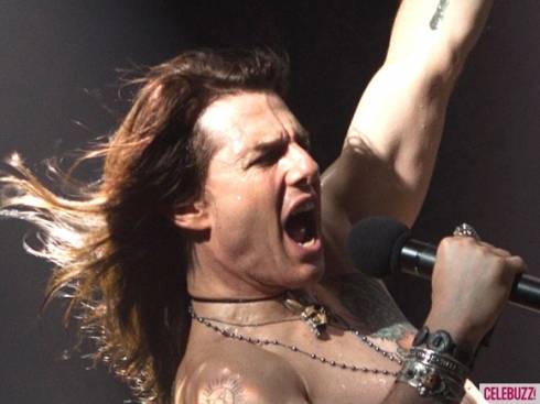 Tom Cruise: sem camisa e cantando no musical Rock of Ages.