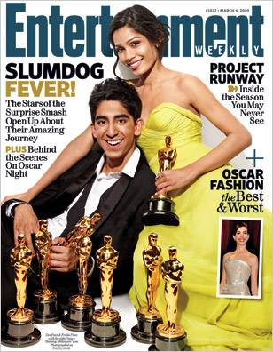 Dev Patel e freida Pinto, protagonistas de Quem Quer Ser Milionário, na capa da revista Entertainment weekly: chuva de Oscars