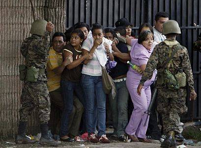 Soldados reprimem cidadãos hondurenhos em Tegucigalpa: a difícil vida sob um regime autoritário.