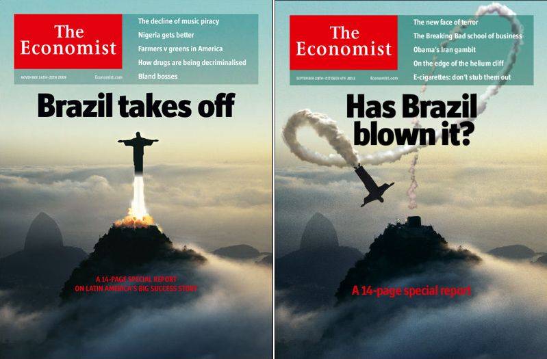 Um bom exemplo dessa pressa descabida em tirar conclusões foi uma reportagem da revista britânica The Economist de 2009, quando – sem dados que pudessem garantir suas previsões – estampou a manchete Brasil takes off (Brasil decola, em tradução livre), com uma imagem do Cristo Redentor decolando como se fosse um foguete.