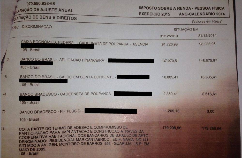 Na condição de cônjuge em comunhão de bens, o ex-presidente Luiz Inácio Lula da Silva declarou ao Imposto de Renda regularmente a cota-parte do empreendimento adquirida por sua esposa Marisa Letícia, de acordo com os valores de pagamento acumulados a cada ano.