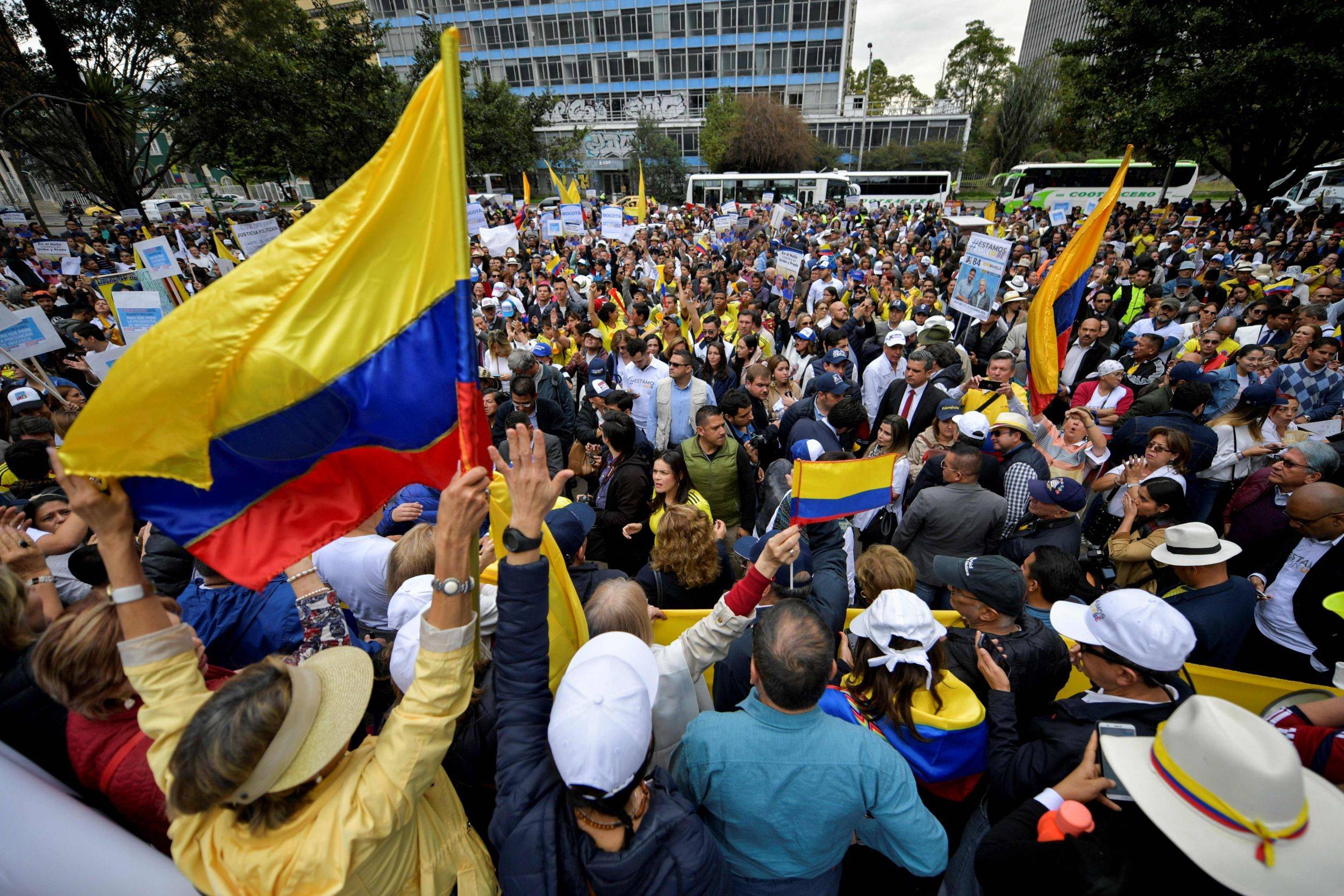 Diagnosticado com covid-19, Uribe foi colocado em prisão domiciliar. Colombianos contra e a favor do ex-presidente saíram às ruas do país para protestar. Aos 68 anos de idade, Uribe é o primeiro ex-presidente do país a ser preso.