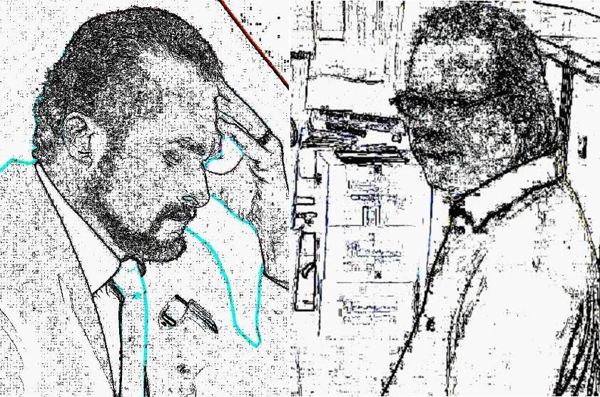 "É noite, os dois companheiros chegam à prisão. Nos próximos dias (meses?, anos?) terão de dormir na cadeia. Estão transtornados.