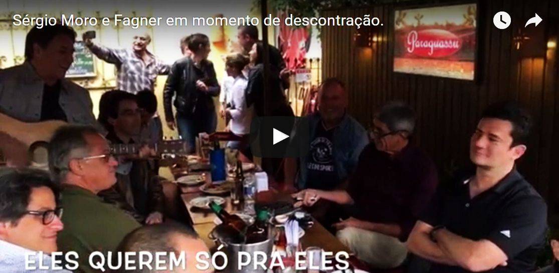 Ao lado do cantor Fagner, o juiz federal Sergio Moro acompanha e aplaude uma música em homenagem à Operação Lava Jato. O vídeo ganhou as redes sociais nos últimos dias.