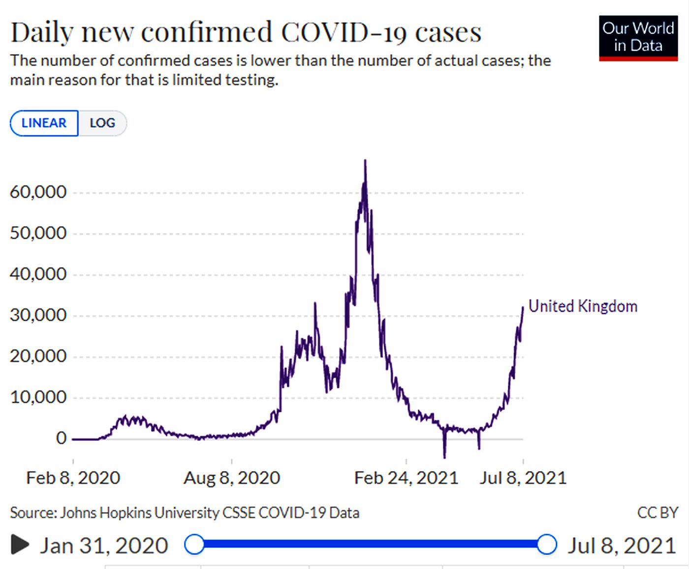 Os resultados da vacinação massiva também ficam claros no Reino Unido, que chegou a picos de mais de mil mortes por dia e hoje reduziu para pouco mais de 20. Mas o Reino Unido também serve de alerta para os cuidados que o Brasil deve ter na reabertura. Mesmo tendo mais de 50% da população vacinada com as duas doses, o número de casos voltou a crescer assustadoramente, alta essa que começa a impactar no número de mortes.