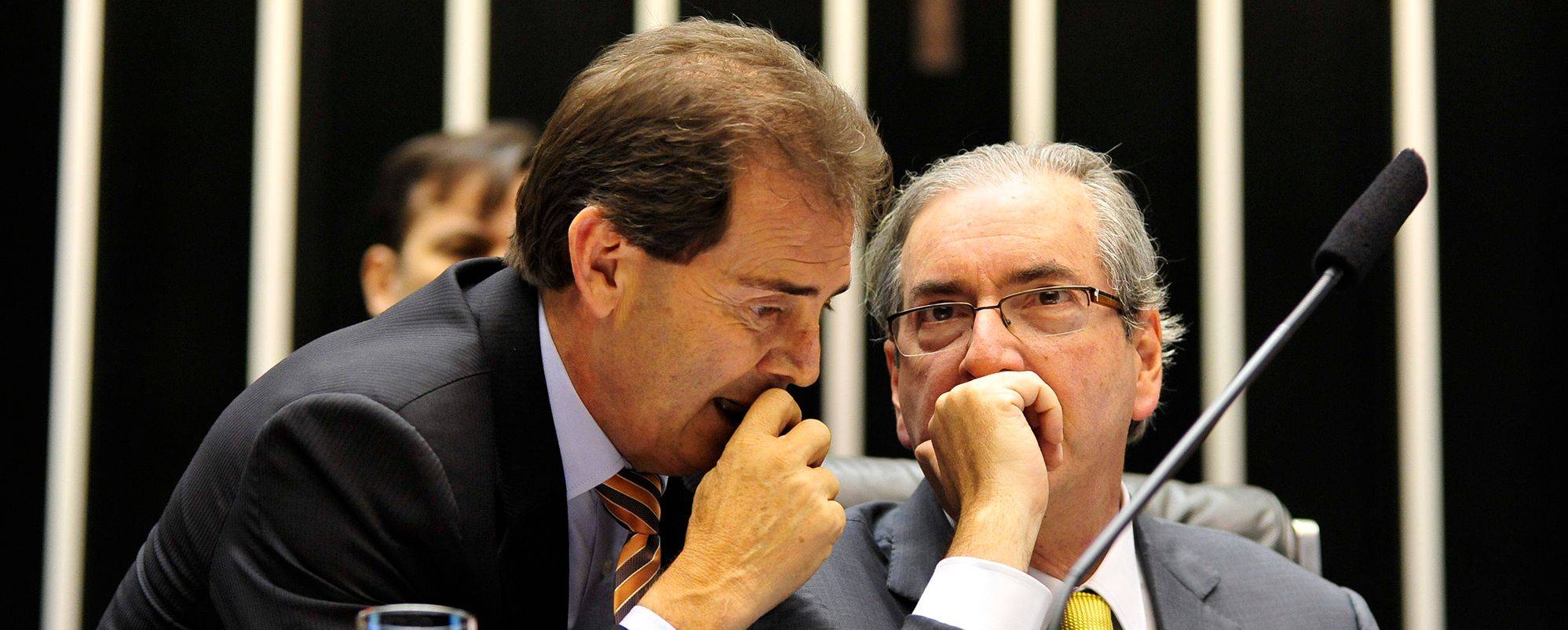 Paulinho da Força confabula com aliado Eduardo Cunha durante sessão na Câmara. Foto: Agência Câmara.