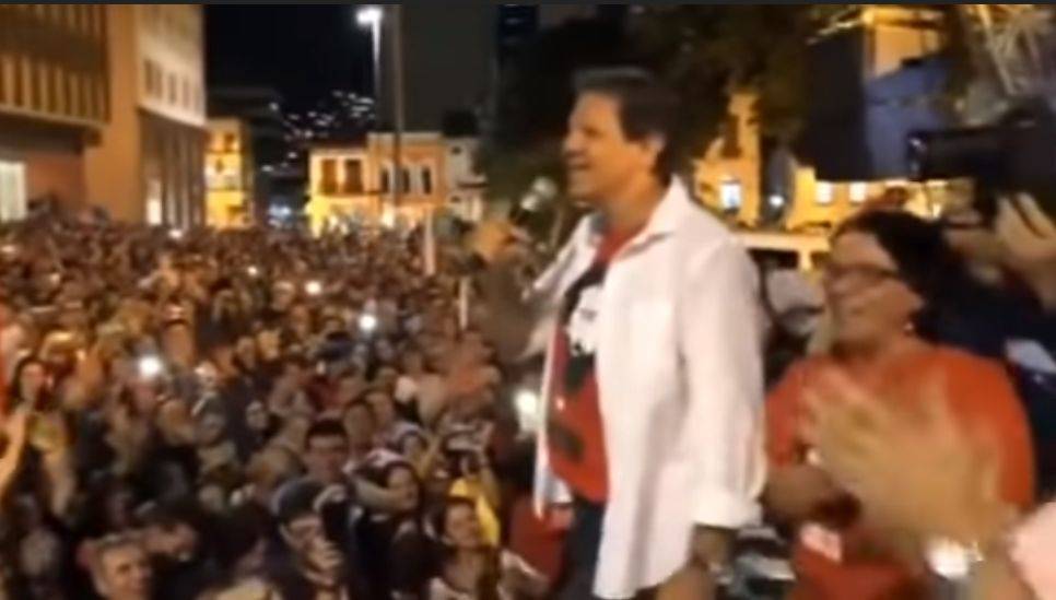 A disparada de Fernando Haddad nas pesquisas de intenção de voto criou um clima de bom humor nos comícios do candidato petista à Presidência da República. Uma mostra desse momento de descontração foi registrado na noite desta terça-feira (18), em Florianópolis (SC).