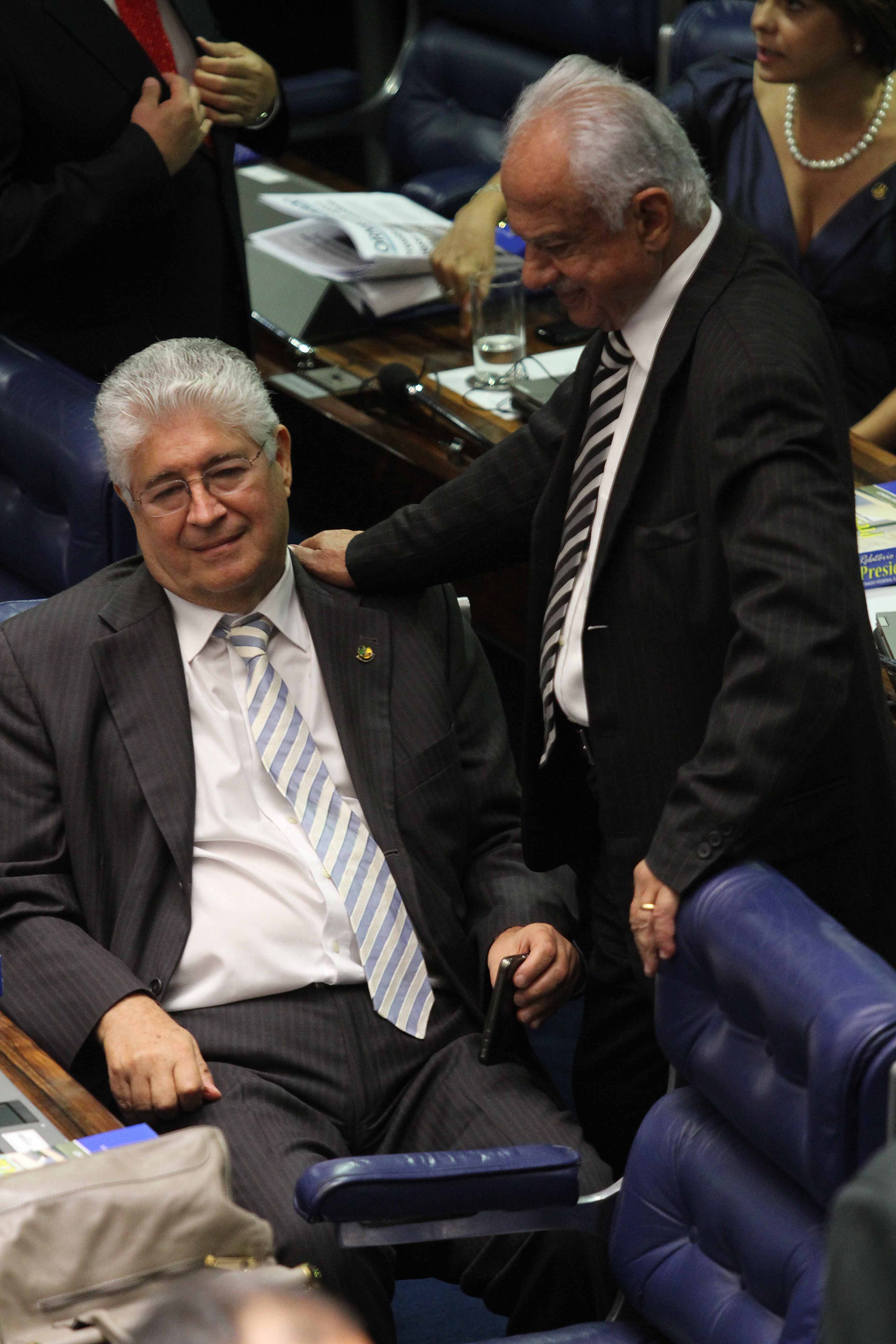 Os senadores Roberto Requião e Pedro Simon, do PMDB.