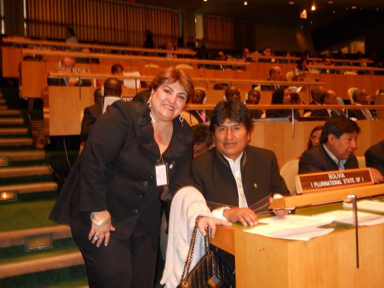 Combate à fome em Nova Iorque: a ministra paranaense Márcia Lopes e o presidente da Bolívia, Evo Morales.