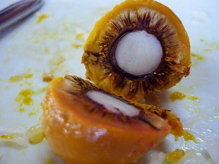Comer pequi exige cuidado, pois a polpa fica na parte superficial do fruto. O restante entre a polpa e o caroço, são espinhos afiados