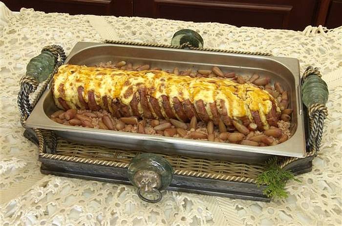 – 1 kg de lombo suíno temperado, assado e fatiado