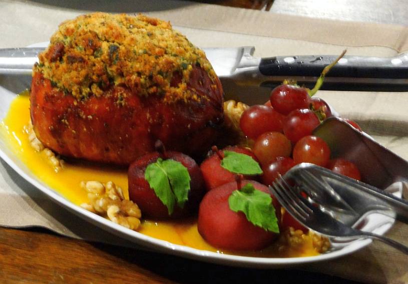 Tender com crosta de nozes ao molho de mostarda e mel