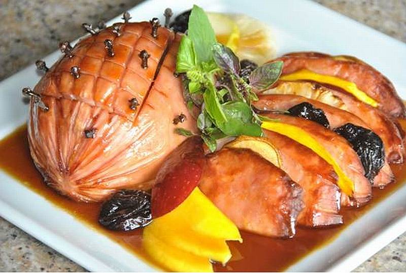Tender assado com frutas ao molho de maracujá