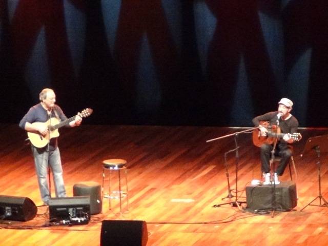 O primeiro a entrar no palco foi Toquinho. Ele iniciou o espetáculo ao som de “Minha profissão”, canção que fala do seu trabalho de compor e levar a sua obra aos fãs espalhados pelo mundo. “Minha voz dispensa passaporte, pode estar no sul, no norte, na Itália ou no Japão. Construir acordes e harmonias, fazer música e poesia é a minha profissão”, diz a letra.