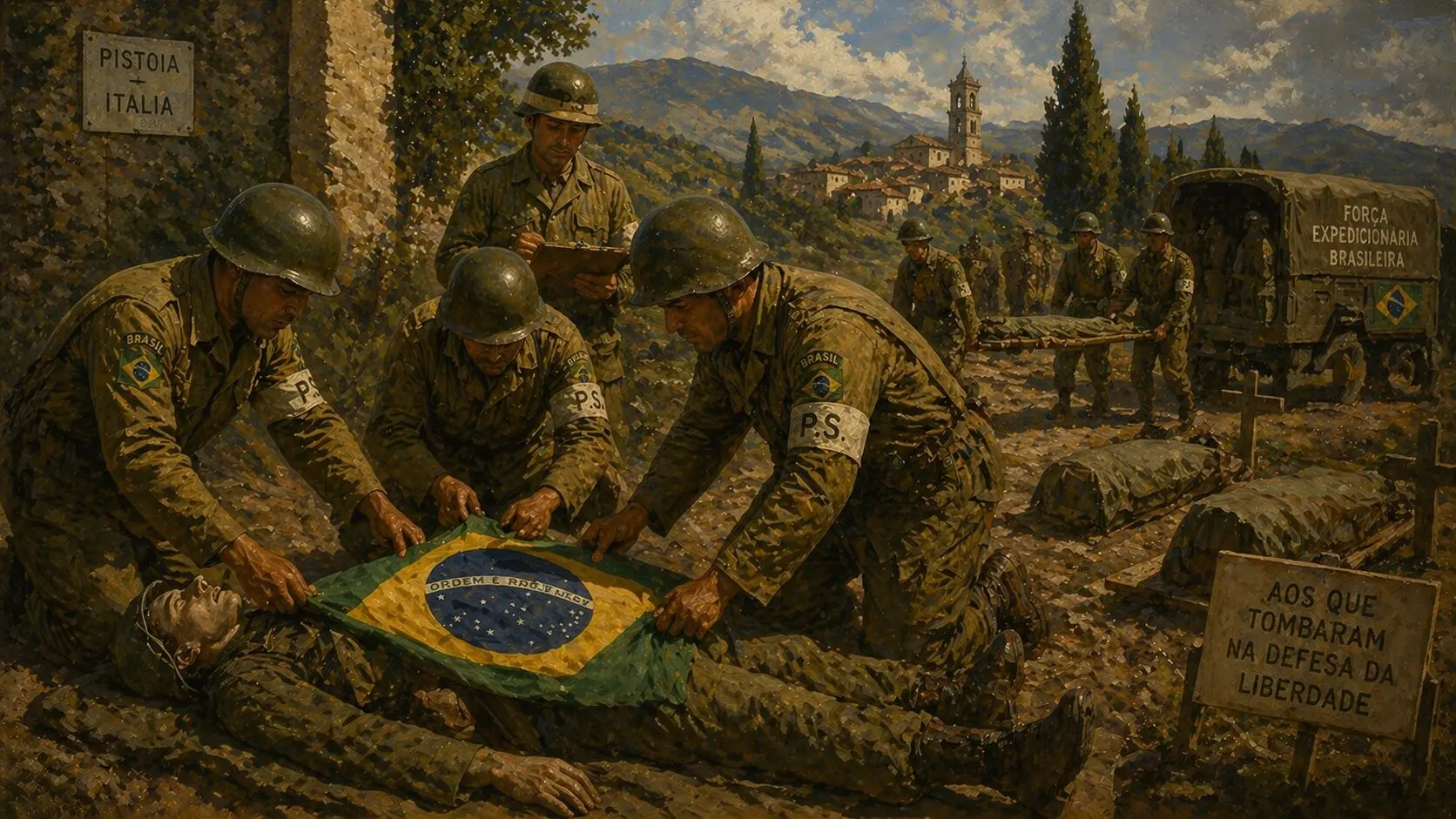 Para se ter uma ideia do respeito desses homens pelos mortos, há registros da preocupação em manter as macas com os corpos sobre cavaletes de madeira, evitando que permanecessem no chão enquanto aguardavam autópsia. Como bem pontua o artigo “Morte no Mediterrâneo: O Pelotão de Sepultamento da Força Expedicionária Brasileira e suas práticas”, imperativos morais e éticos orientavam sua atuação, garantindo cuidado humanitário aos mortos e permitindo funerais realizados pelas capelanias — prova do zelo dos próprios companheiros pelos que tombaram.