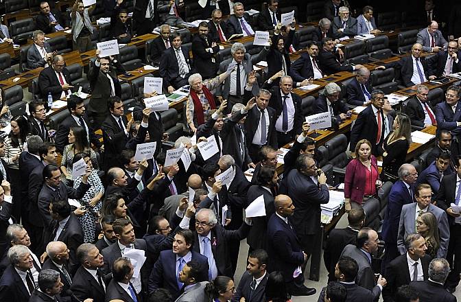 Protesto no plenário em defesa da votação nominal, que é registrada no painel eletrônico. Foto: Luis Macedo/Câmara dos Deputados (Foto: )