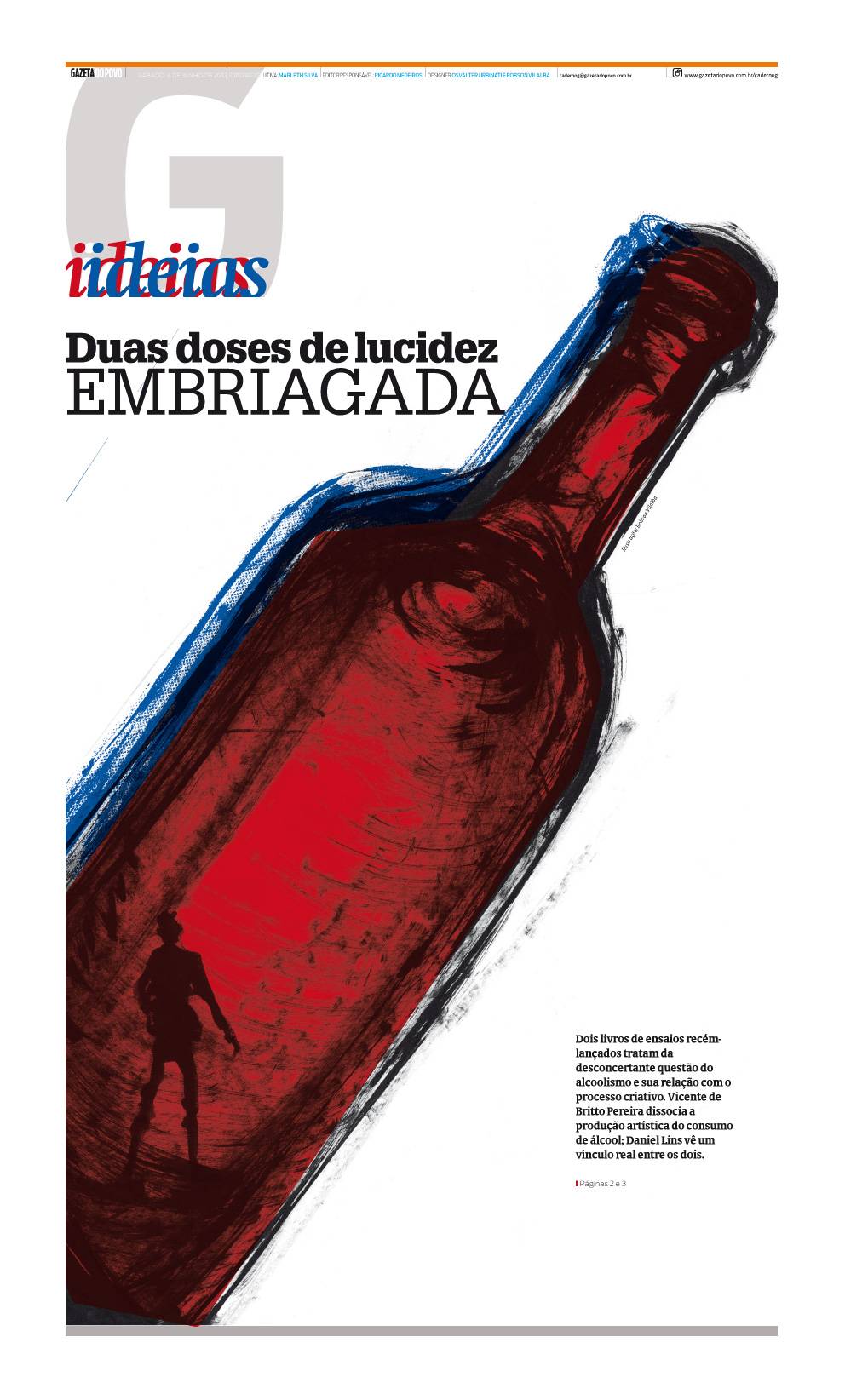 O design de Robson Vilalba engarrafa com perfeição o assunto. Suas garrafas desenhadas com pincel seco e os blocos de texto inclinados dão ao leitor a embriaguez necessária para acompanhar a discussão.