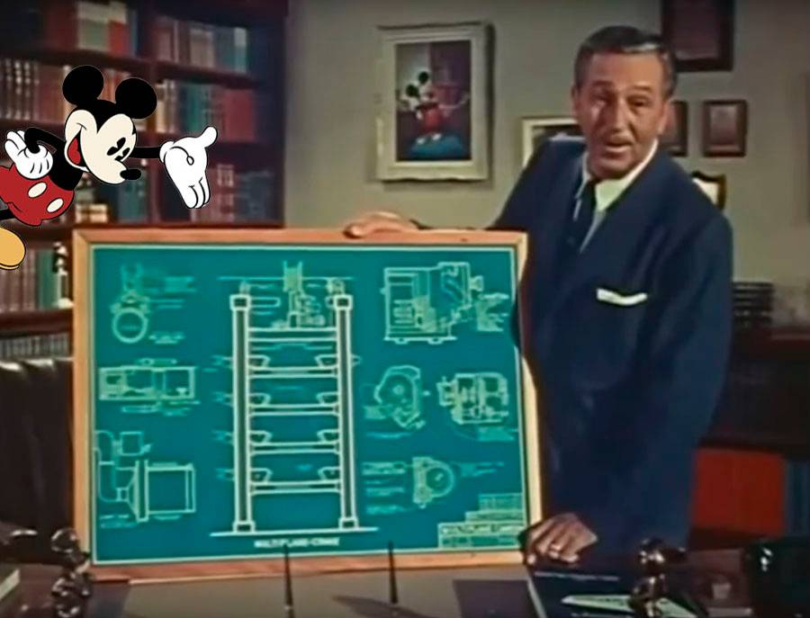 O mestre dos desenhos animados e criador do Mickey estava com dificuldades em dar efeitos tridimensionais em seus desenhos e foi assim que criou o que ele chama de “câmera multiplano”. Veja abaixo, vídeo em que Walt Disney explica como toda tecnologia foi inserida em seus desenhos em 1957.