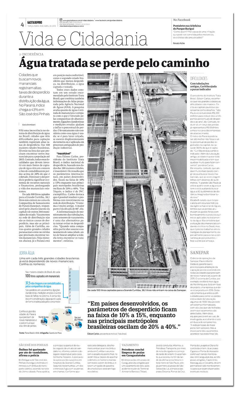 Uma composição simples que valoriza todos os elementos sem que a diagramação seja perceptível para o observador comum. Neste exemplo, o texto de Katia Brembatti, sobre a redução da vida útil dos manancias por conta do desperdício de água, está fluindo tranquilamente, sem interrupções e emoldurando a bela foto de Daniel Castellano. Todos os elementos gráficos estão colocados de forma harmônica, alinhados por um grid invisível que o leitor não vê mas que tornam a leitura mais tranquila.