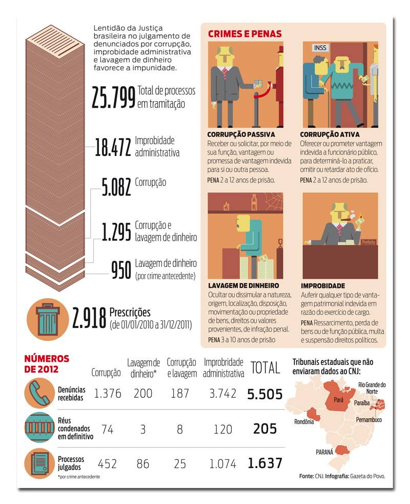Na matéria de Karlos Kohlback, o info de Rafael Andrade mostra que entre 2010 e 2011, segundo levantamento do CNJ, a Justiça brasileira deixou prescrever 2.918 ações envolvendo crimes de corrupção, lavagem de dinheiro e atos de improbidade administrativa.
