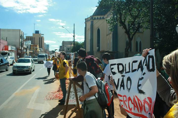 Manifestação de estudantes no centro de Ponta Grossa em defesa da qualidade do ensino superior (jul./12)