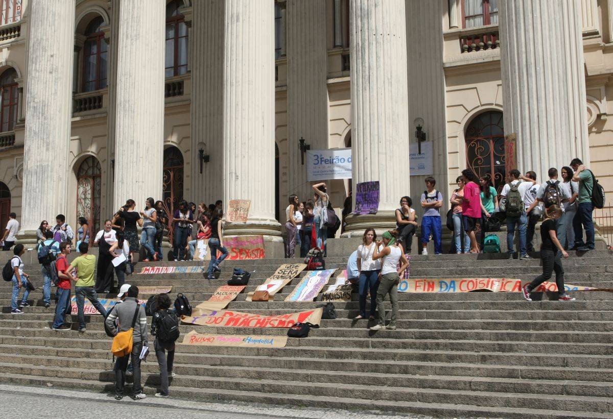 Foto de arquivo: manifestação de calouras contra excessos dos veteranos em abril deste ano