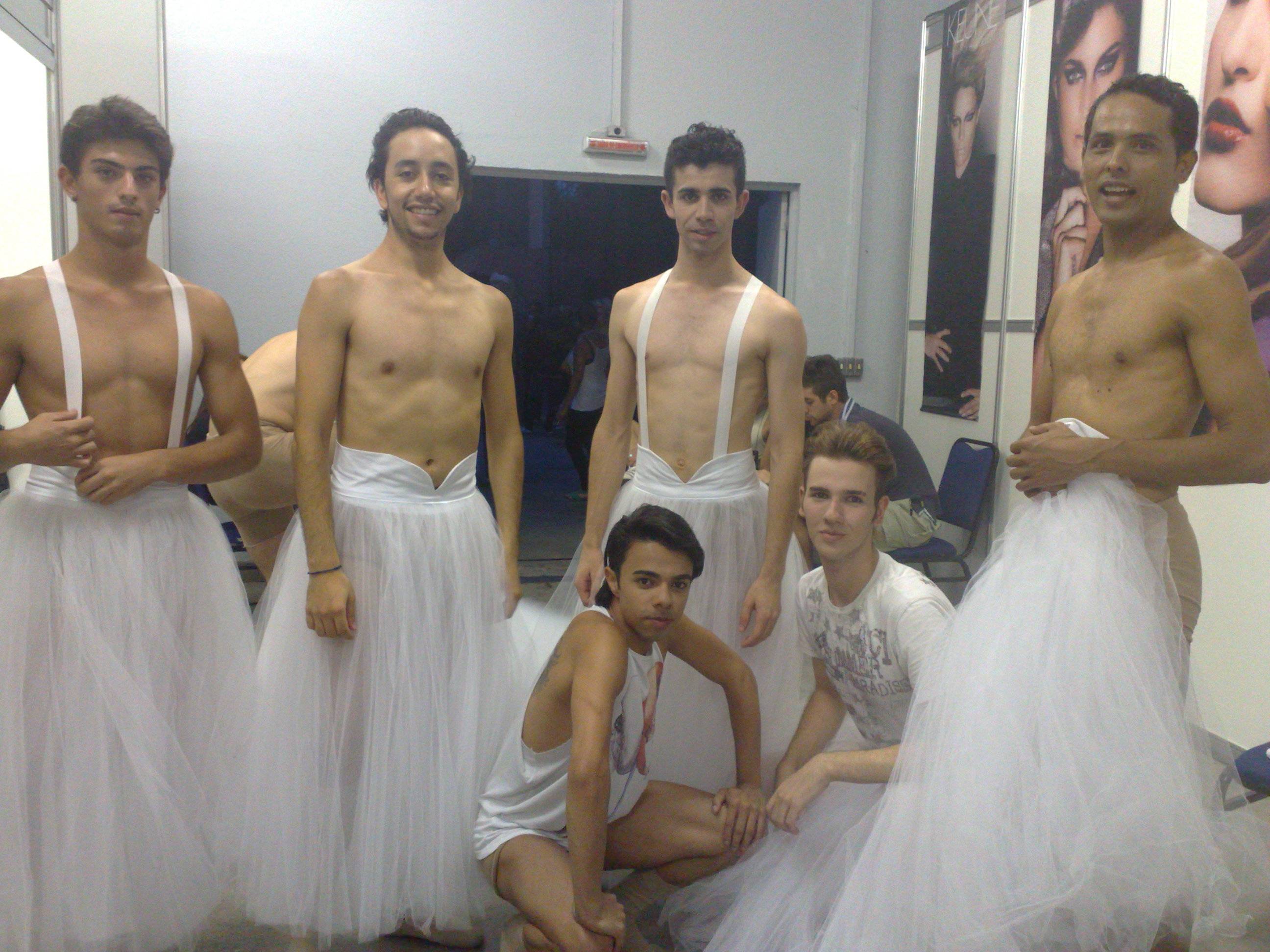 A Cia de Dança Jair Moraes, composta por 19 homens e uma mulher, abriu o desfile da picnicdelefante nesta quarta-feira (24). O blog Eu Visto acompanhou o aquecimento do pessoal, minutos antes dos flashes dos fotógrafos. Confira: