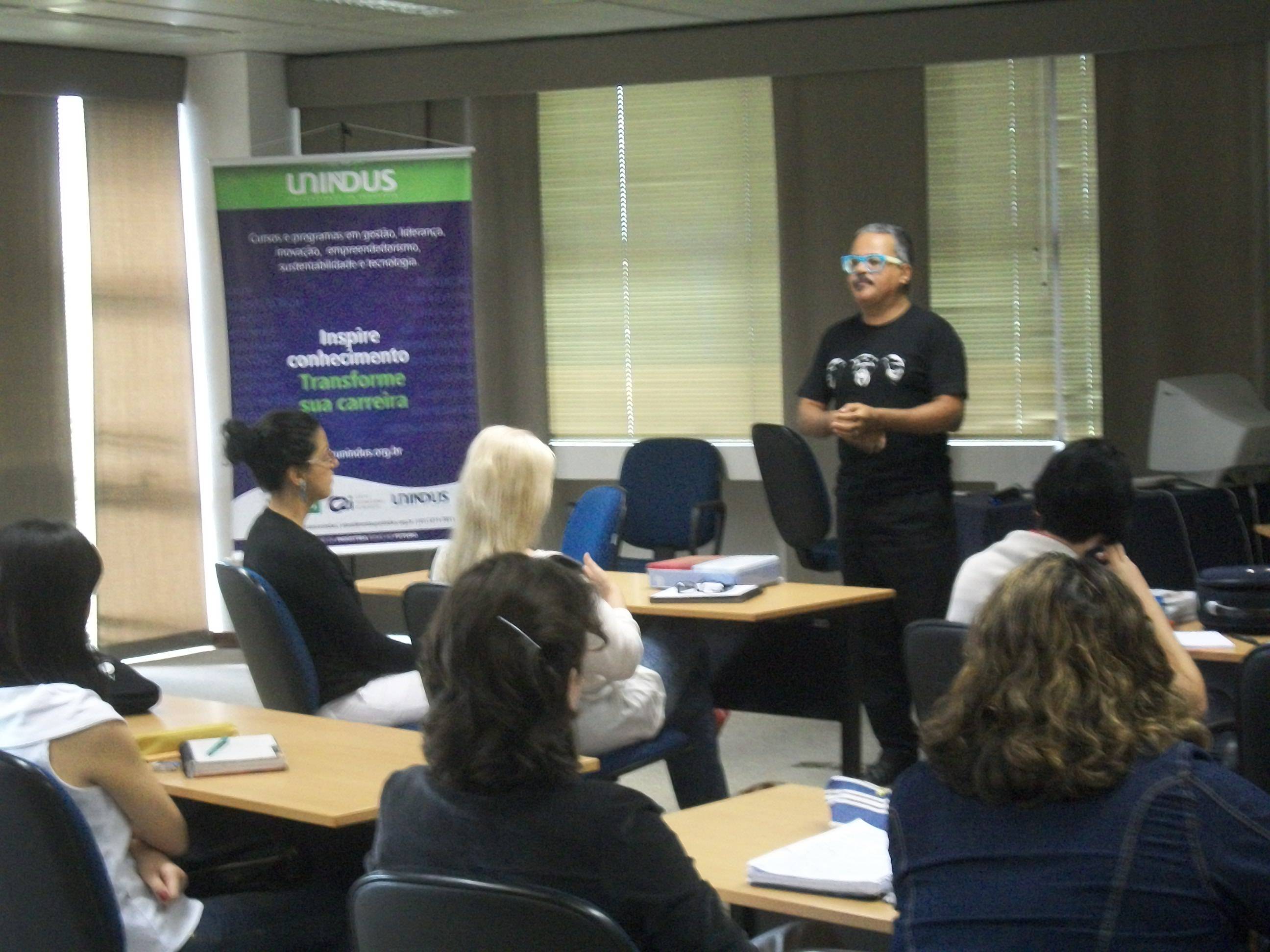 Desde às 8h30, os participantes estão tendo uma aula com o mestre sobre referências, inspiração, identidade, processo criativo, etc.