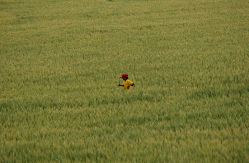 Depois de vários dias de estiagem na região norte do Paraná, a chuva fez a alegria dos agricultores que plantaram trigo e também de um garoto, que fotografei no final de tarde correndo atrás de uma pipa na plantação, próxima de Londrina.